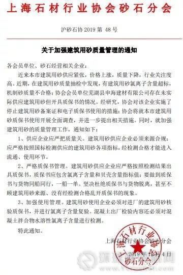 上海砂石協(xié)會發(fā)布《關(guān)于加強(qiáng)建筑用砂質(zhì)量管理的通知》